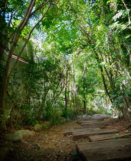 木のトンネルとエキゾチックな木々の撮影シーンでアクセントにストロボ光をプラスすることで普通のロケ撮影とは違った雰囲気に仕上げていきます